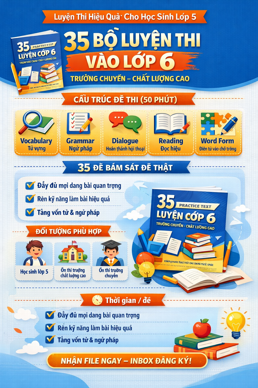 35 Bộ Đề Luyện Thi Vào Lớp 6 Trường Chuyên Anh – Chất Lượng Cao có key